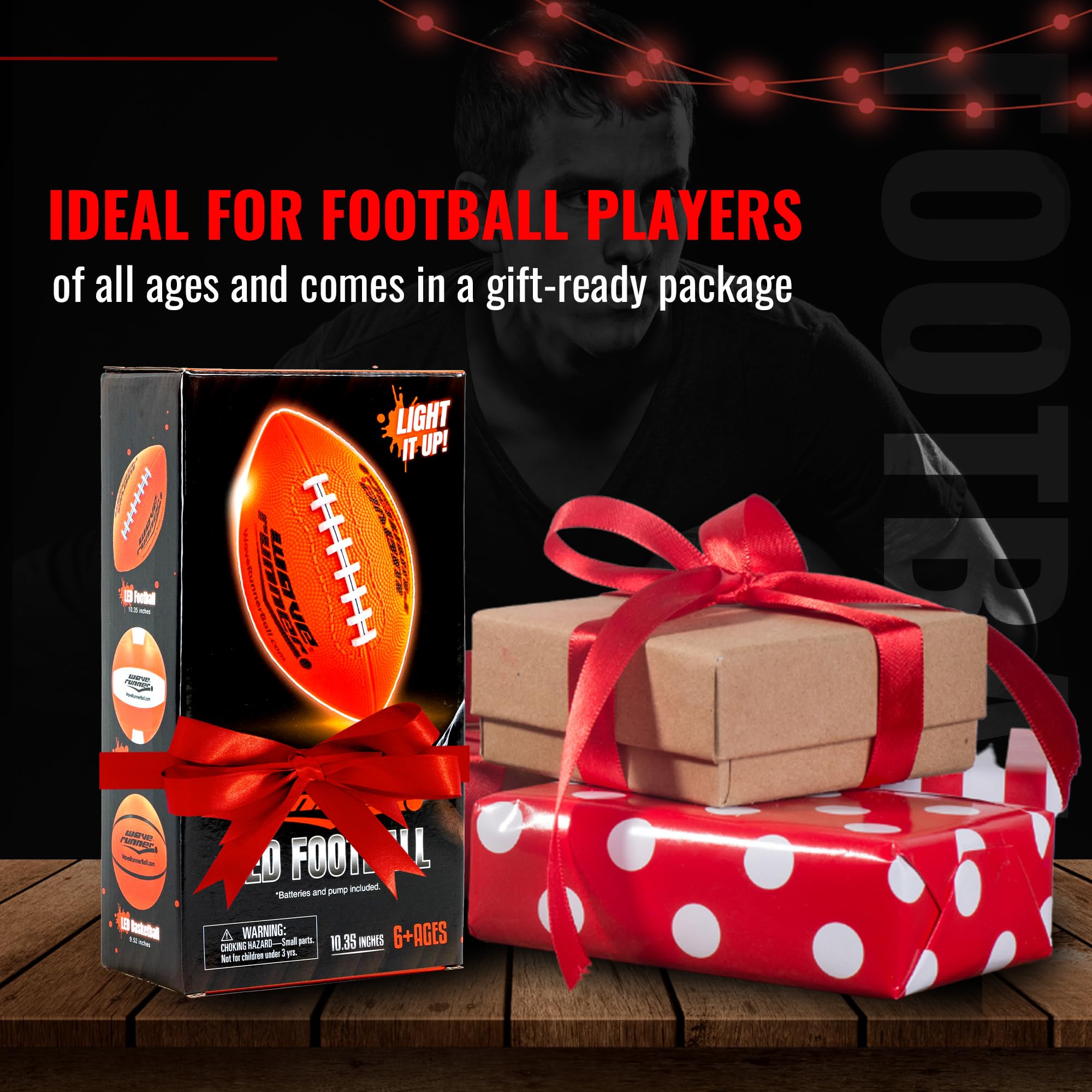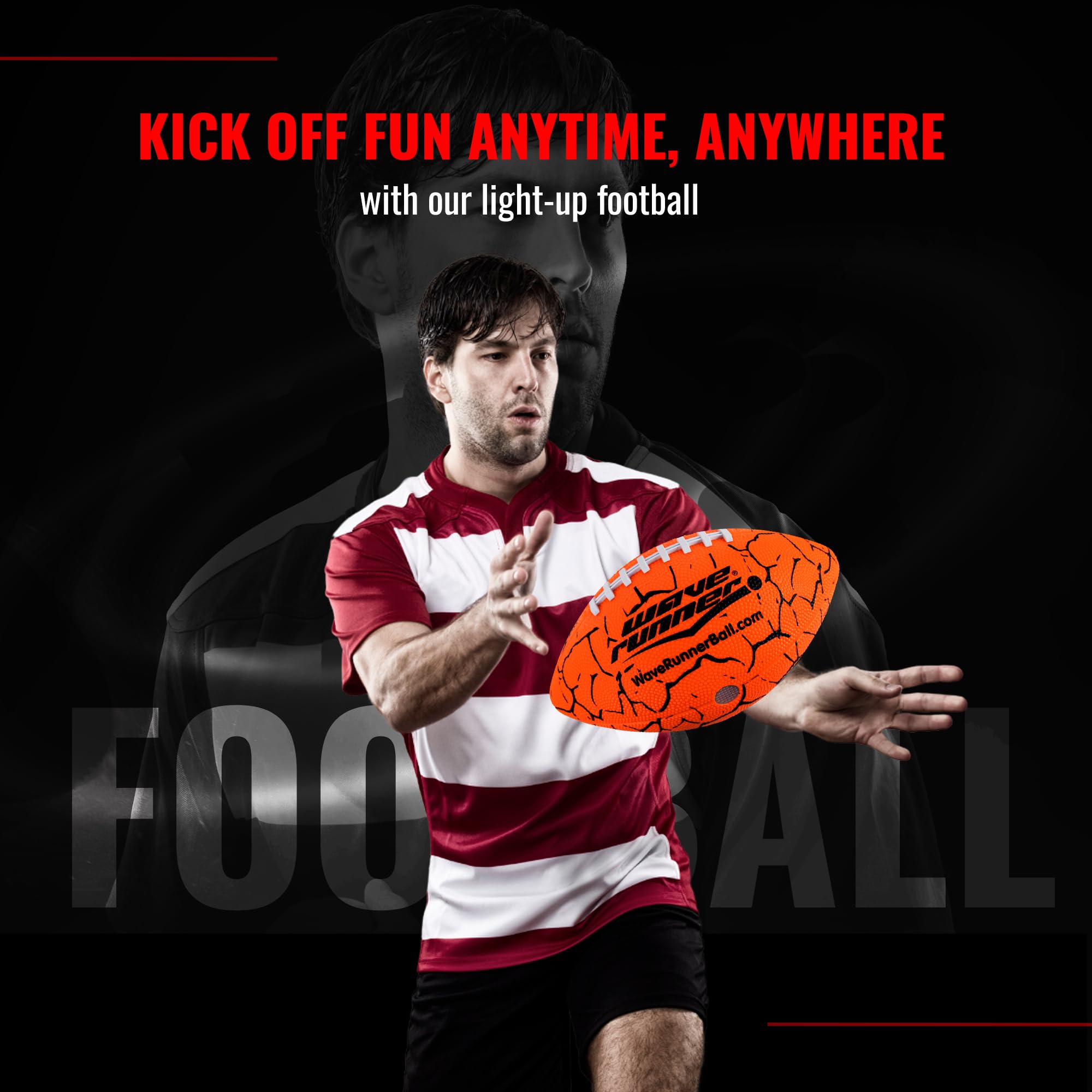 - PLAY DAY OR NIGHT: Experience a new dimension of football with our Waverunner LED Football, glowing brightly with each catch and throw. Perfect for extending playtime into the evening, it brings an exciting twist to your traditional football game.